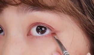 2、在下眼睑边缘稍稍带一笔眼线,让上下眼睑的眼线略带连贯,增加无辜感。
