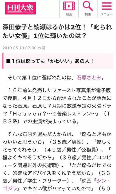 十元女士在各种评选中被cue已经是常象,而这次“最希望被她骂”的评选中,网友给出的选石原里美的理由是:感觉她生气的样子很可爱,会温柔地训斥我;