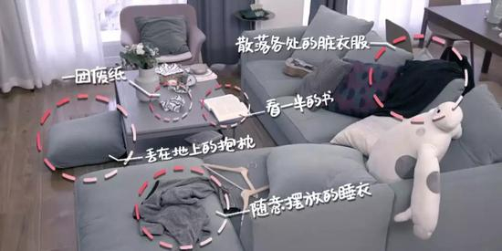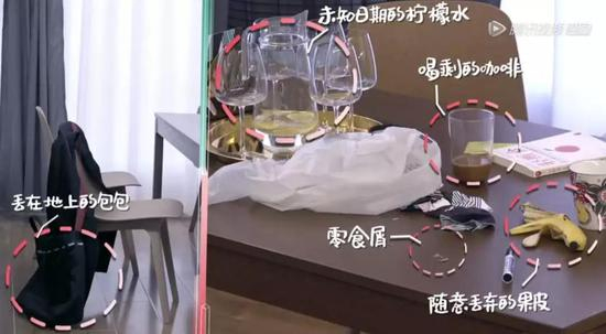 之前热播的《我和我的经纪人》,老板杨天真的房间也躲不过脏乱的局面。随意丢弃的废纸、果皮,地上的包包、抱枕。。。。。。