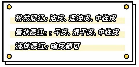 我给你们总结了一下每种肤质适合什么质地的腮红,但也没有硬性规定哈,你们根据自己喜好来就行了。👇