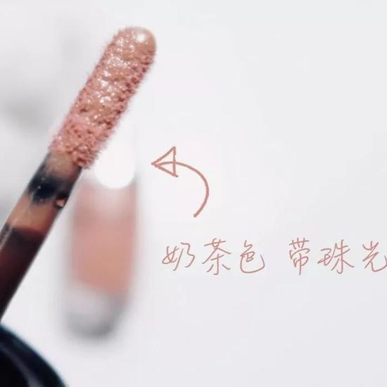 这支比较戳我的就是奶茶色里面带一点小细闪,在阳光下blingbling的,我一般见对象、约会啥的就会涂这支,毕竟我觉得没有男生能拒绝这种温柔又带着细闪的“心机色”吧。