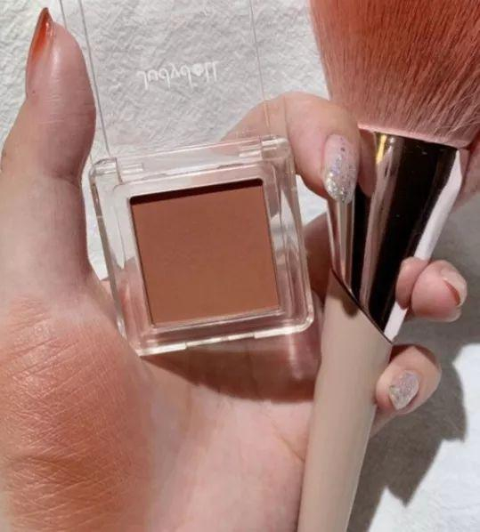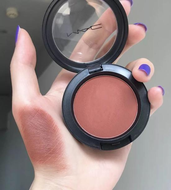 它是砖红偏棕的暖色,所以上脸还会有修饰脸部轮廓的作用,轻轻刷一道就很好看,很适合画奶茶色或者大地色系的妆容!不过记得少量多次,不然会显得妆面很脏。