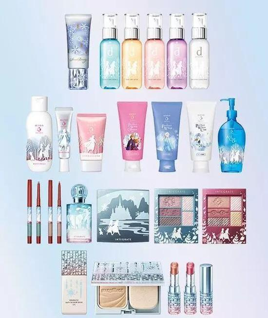 资生堂一口气给旗下4个重点大众品牌(d program,senka,integrate,maquillage)都配上了迪士尼《冰雪奇缘2》限定版产品,但是产品类别又相互不重叠。