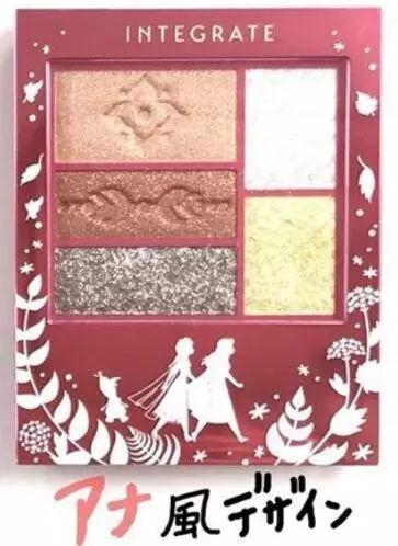Integrate五色眼影,无论是包装还是眼影的配色都分别对应了艾莎和安娜的角色特征。冷调的冰雪紫色系和温暖的橙棕色系。