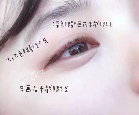 选择了大地色眼影小面积打底。假睫毛绝对要拒绝,只画后面一点点眼线,反而会让你的底妆显得更干净,妆容的层次感一下子出来了~“