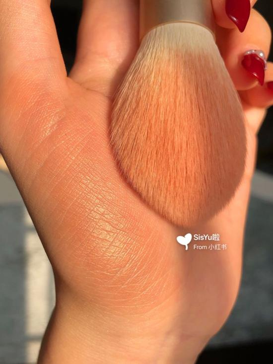 显色度不是很高,所以新手宝宝也可以很好操作,个人觉得也超级适合刷在脸颊两侧当修容,有修饰脸小的效果。里面的细闪又让脸看起来膨膨的,非常有光泽感~