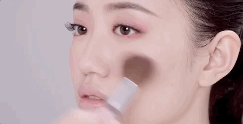 2⃣️ 在眼尾处直接用腮红刷将腮红与眼影融合,在颧骨处大面积晕染,最后落在苹果肌的位置。少量多次,是长脸妹子的腮红日常。