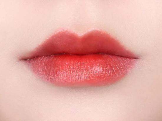 鲜鲜的大橙子一个!很明媚的颜色,橙子果肉既视感,质地刚涂出来是有点泥状的,之后会变得清透轻薄起来,所以不要看刚上嘴的色调,而要看它成膜的颜色!