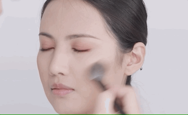 沾取少量粉橙色腮红点缀于苹果肌,让妆容元气满满更加少女!