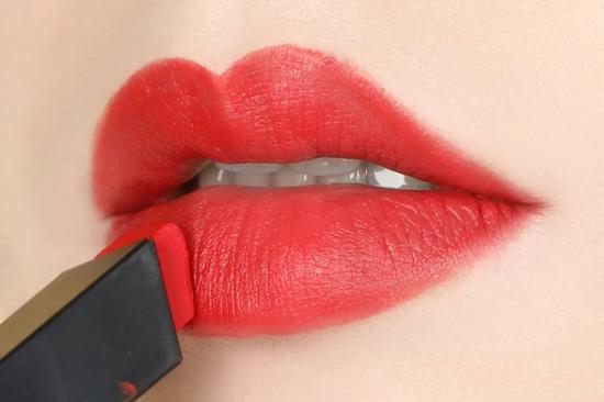小金条的质地有点类似软糯的皮革,上嘴巴后是非常高级的哑光感!不过,它的缺点就是非常干,得提前做好唇部打底才行,好在我的唇纹比较浅,所以不会担心卡唇纹~