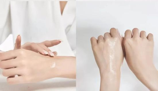 冰淇淋般的质地,非常好推开,刚涂上就感觉被皮肤嗖嗖地吸收了,滋润不油腻。