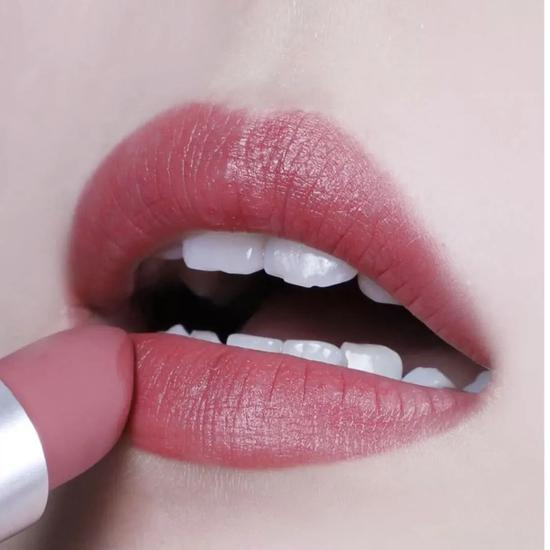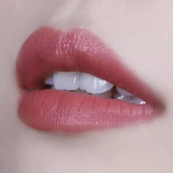 奶油慕斯的质地,上嘴丝滑不拔干,成膜后是纯哑光的效果,不怎么显唇纹~