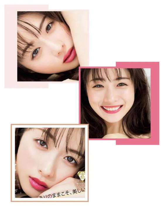 整个眼妆配色偏寡淡系,所以口红部分咱们可以参考被小松菜奈频繁宠信的大红色唇膏,聚焦妆容。