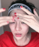 另外要给大家介绍的是Goss大叔发明的胶水定妆法!首先要在脸上喷一层定妆喷雾,然后把定妆喷雾和粉底液在手心用美妆蛋混合。
