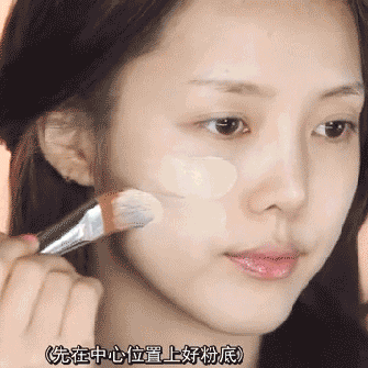 有扁头粉底刷的姐妹也可以用刷子把粉底平铺在脸上。之后再拿起万能的美妆蛋拍拍拍,让粉底和皮肤融合在一起。