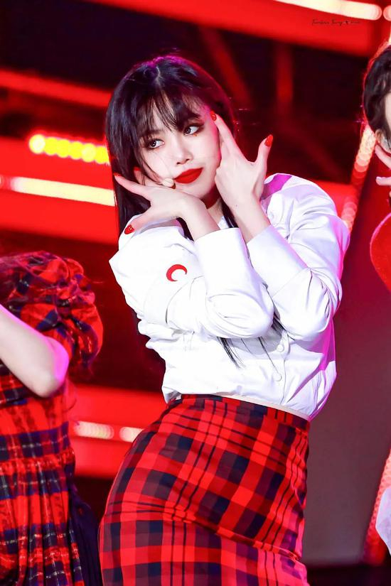由于镜头会“吃妆”的缘故,女团的plmm们在舞台上表演时,总会选择比日常较浓的眼影保持上镜的妆容完整。浓眼影对于适合的plmm来说也能更好地凸显个人风格。
