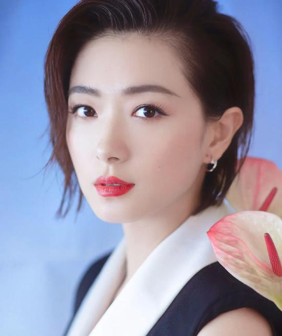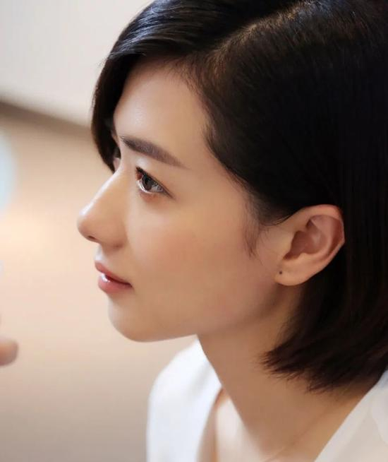 短额头、长中庭,让她自带成熟感,鼻子高挺,但其他地方的骨骼没有太大的起伏,正面看五官整体稳重但过于平面化,给人的感觉是成熟、柔和的美。