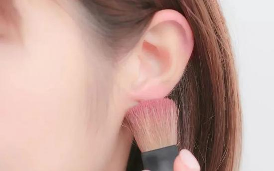 腮红不仅涂在脸颊,扫在鼻头,更能增添少女感;扫在耳廓,更是能加速(假装)对方(自己)的心跳。
