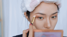 Step2:眼影形状上挑到外眼角上方,注意晕染