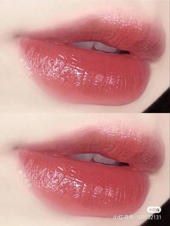 薄涂是水润的肉桂色,厚涂偏草莓红,嫩嫩的!