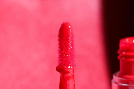 它的刷头比较纤长,前段微翘较细,涂起来什么方便,嘴角的细节也能很好的勾勒,这点非常优秀。