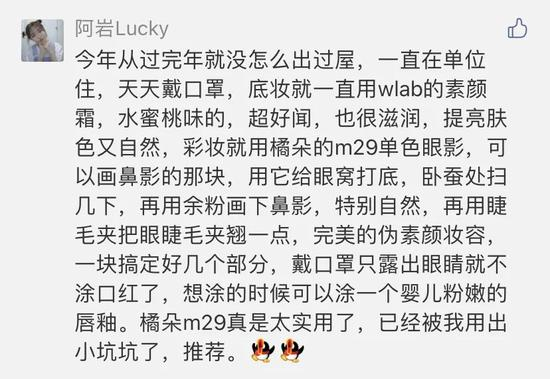 对于脸上没有啥瑕疵的姐妹们来说,这款素颜霜也可以尝试一下,妆效是偏自然的,没有太假面。而且用起来也不像粉底液那么容易沾到口罩上。懒人必备!