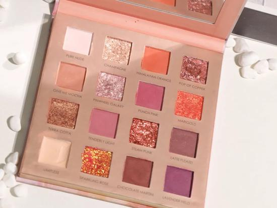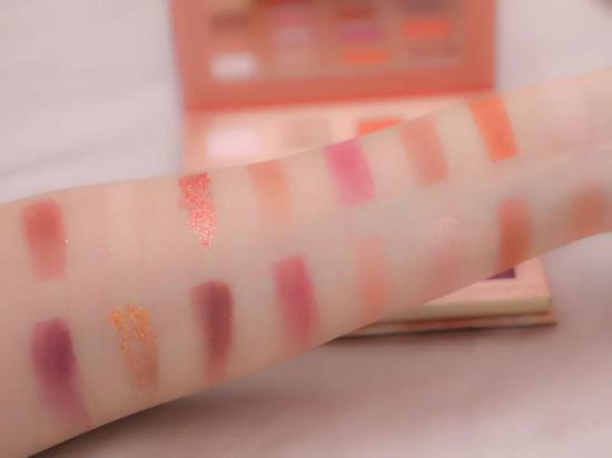 菲鹿儿家的大盘眼影比较多,投稿人安利了很多款,小编来推荐一下它的干枯玫瑰盘~这盘颜色很活力!配色以玫瑰色、橘棕色为主,亮片色也很扎眼!重点是不飞粉,上眼也很好晕染~