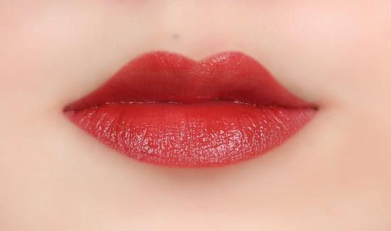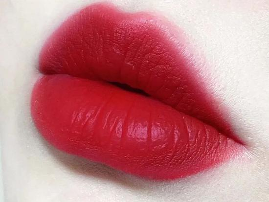 它是有点玫调的复古红,涂上很显气色~低调又高级~虽然是哑光质地,但是也不拔干,膏体抹开也很丝滑!看厌了999的,也可以考虑入手这个色号!小编觉得被种草了!