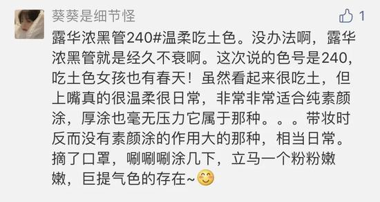 投稿安利的黑管#240,是很有日杂感的吃土色,奶油质感,上嘴不会太夸张,很温柔!因为是滋润挂的,光线下还能看到很好看的光泽感!