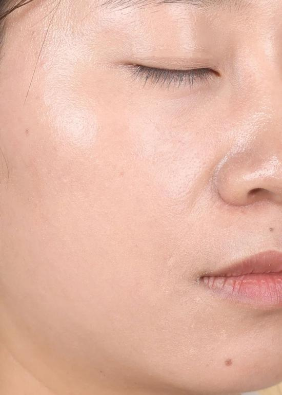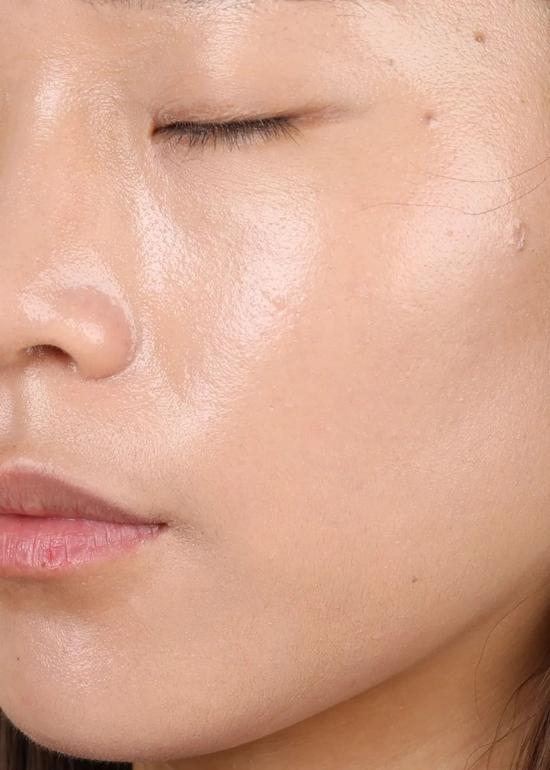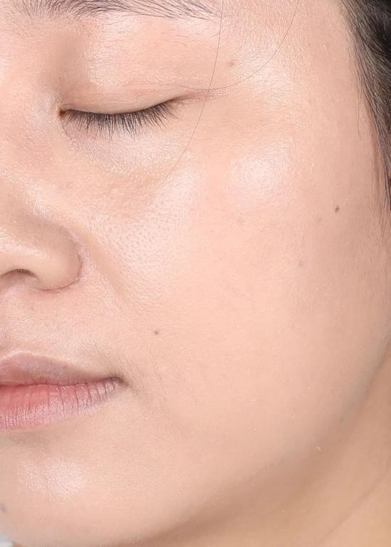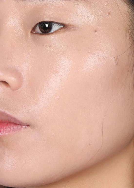 因为要达到控油的效果,所以它的设定就少不了哑光效果。上脸像是开了磨皮特效似的秒变哑光,看上去害挺高级的。