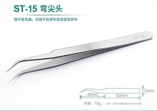 尖头镊子适合新手用来调整细节,弯曲的角度可以更好地将适应眼睛的弧度。