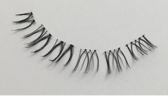单簇式一般需要自行修剪,如果我们手头有成副的假睫毛,但是一整副佩戴太过呆板,就可以将它修剪成单簇式,这样佩戴难度小,而且已经将长短搭配好,比较适合初次尝试分簇式睫毛粘贴方法的姐妹们。