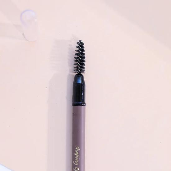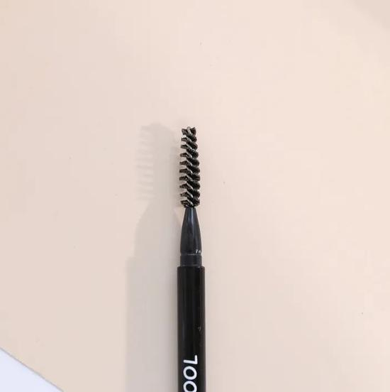 眉笔整体很纤细,自带的眉刷也很好用,笔触质地偏干但蛮软的,不会涩涩的,画眉很顺,基本不掉渣!