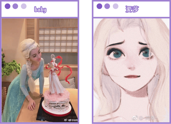 baby也采用了同款全包眼线的方式来增强眼部的烟熏感,但相较于艾莎大面积的蓝紫色眼影,baby的表现度就没有那么能打啦,但美貌依旧无敌!