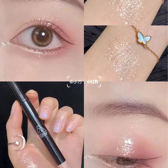 恰到好处的亮片不会太过,不仅丰富了眼部内容,还视觉放大眼部,让它显得自然又灵动,简直就是少女感利器!
