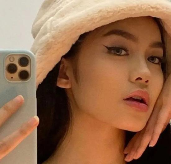 她本来是比较有灵气的长相,画上欧美妆之后,整个人的气场大变!完全是一张混血辣妹的既视感!