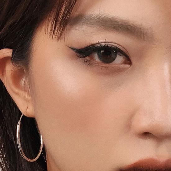 不是一味地画出一条愣愣的黑线,用这种方法画出来的上扬眼线,不死板,更加柔和。