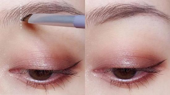 先在自己眉毛形状的基础上顺着生长方向画出轮廓,最后用液体眉笔画出根根清晰的眉毛增加毛流感。