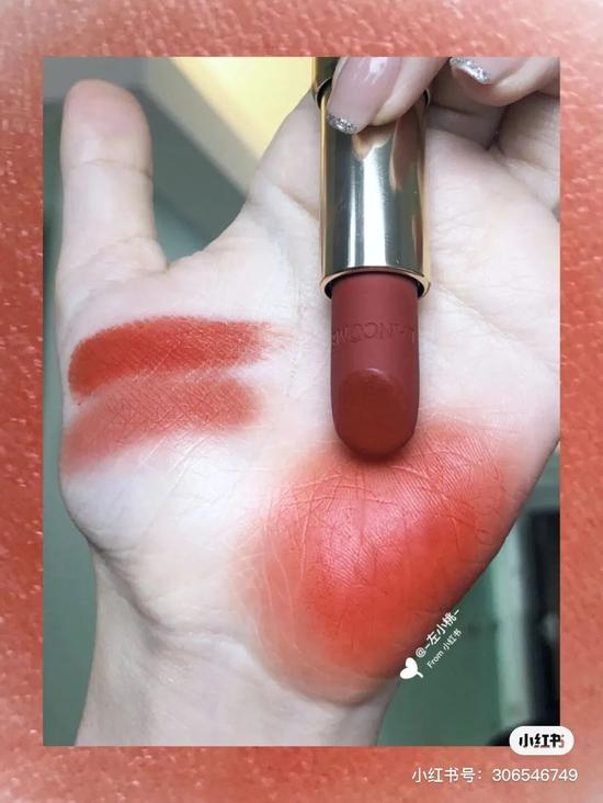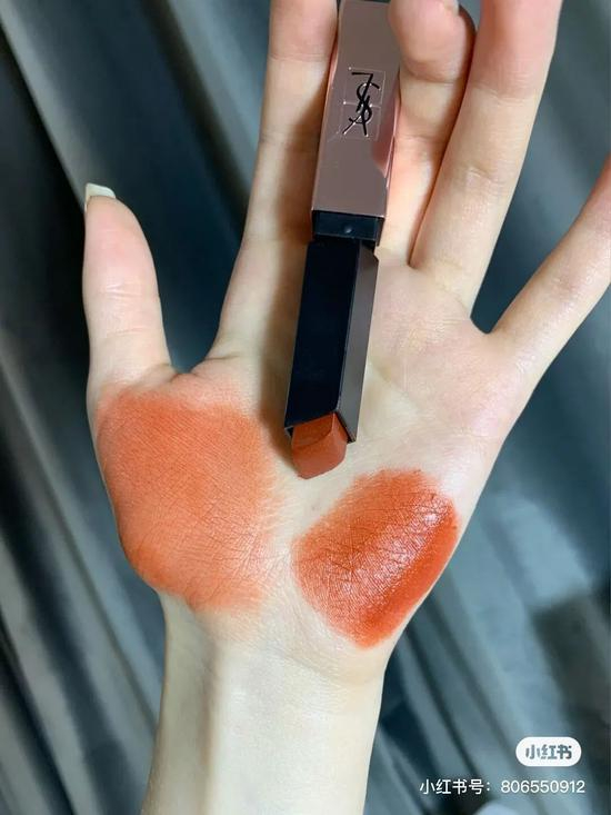 薄涂是很有质感的肉桂红棕色,会非常抬气质。厚涂是酷感十足的陶土红茶色,搭配皮衣简直好看炸了!目测这支入股不亏~