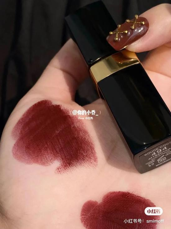 我本来以为这种饱和度很高的红棕色,会容易显得人气色不好,但是这支494号色却让我很意外,上嘴一点都不显老,反而有种暗黑系女王的霸气感。