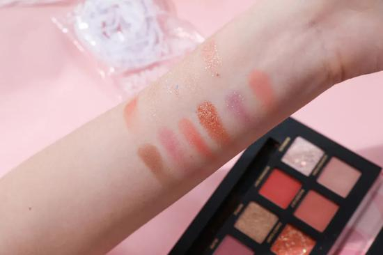 而且一盘里包含了哑光、珠光和闪片,无论想要什么妆容都能帮你搞定,另外粉质也是软软糯糯的,都不怎么飞粉,用手一抹显色度就非常奶思!最近想要买眼影的姐妹或者为圣诞节妆容做准备的一定要买闪亮百搭的这盘~