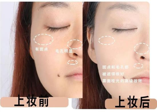 首先它采用了感光专利科技(专利号:102107295000),粉底中的感光颗粒,会根据光线不同自动调节妆面的呈色,就算你带妆出门,在强光下也不会假面,相反很自然!而且底妆能够超长待机不暗沉,一整天下来底妆依旧白净均匀~