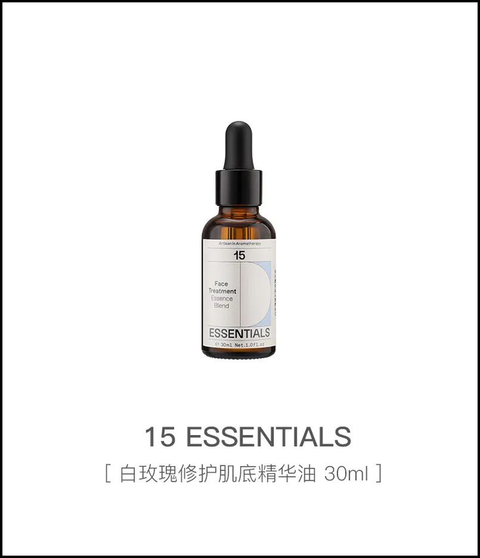 15 ESSENTIALS白玫瑰修护肌底精华油含有超过95%的天然植萃,同时满足修敏去红、强韧屏障、抗氧御龄、细滑润泽多重肌肤需求。核心成分双重白玫瑰精粹配合高效成分乙酰基六肽-8,多重黄金胜肽和绿榄角鲨烷,促进胶原蛋白再生,对抗炎症及衰老问题,且长效锁水保湿。
