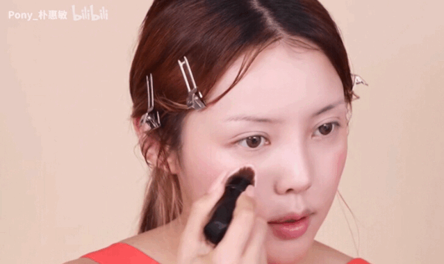 Pony大神还教了一个小tip,就是把自己的脸想象成水果,在苹果肌正中间的地方利用遮瑕提亮,就会拥有有嘭嘭的苹果肌了!配合颜色明亮的腮红,是不是超可爱!