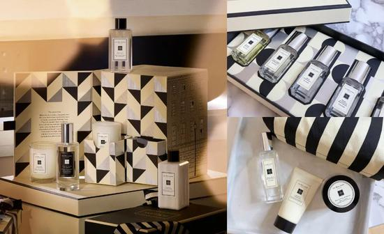 同样,JO MALONE今年也照旧推出多款限定礼盒!以1920年爵士年代的奢靡复古风为主视觉,礼盒上印着典雅的黑白几何图腾!小巧可爱的方块礼盒中藏着5款明星香气,从蜡烛、香水到身体乳、护手霜,任你尽情感受香气~