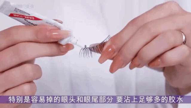 胶水看不到的时候,就说明粘贴好了。但是还没有结束哦!为了把自己的睫毛和假睫毛结合在一起,可以用睫毛膏在睫毛根部刷“Z”字型,这样根部就不会结块啦!