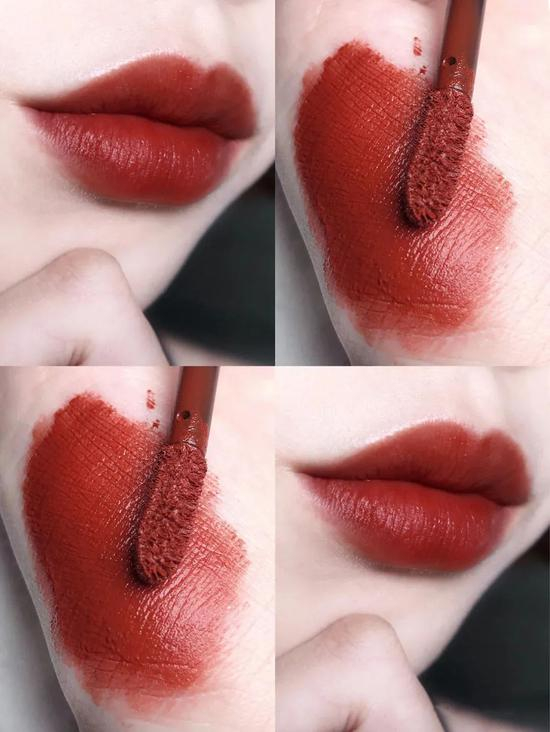 大家看看它的试色图,是不是比红酒更浓郁更诱人?红中带点紫调,个性十足,说是蹦迪色都不为过!而且上唇就像霸气黑化的女主角,非常适合去手撕前男友!