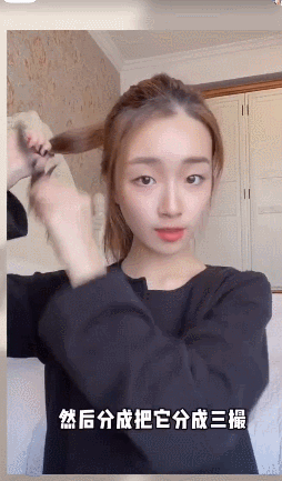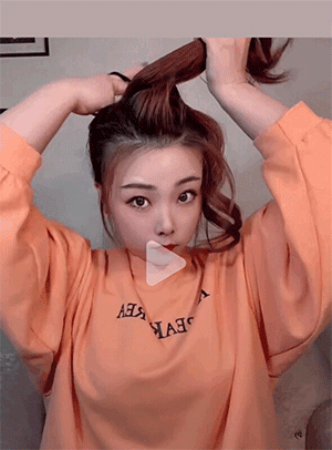 显高颅顶且扎马尾不塌的秘诀,你一定要知道!首先在颅顶取一小缕头发扎起来,从中间掏一个洞把头发翻过去。
