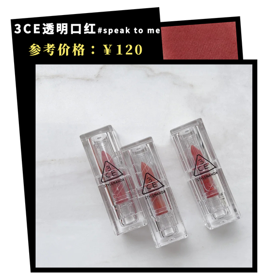 号外号外!3ce终于换包装了,这种亚克力透明的包装完全就是长在我的审美点,简约又清透,一眼就能看到里面膏体的颜色,再也不用费力地扒拉看底下的口红色号啦~