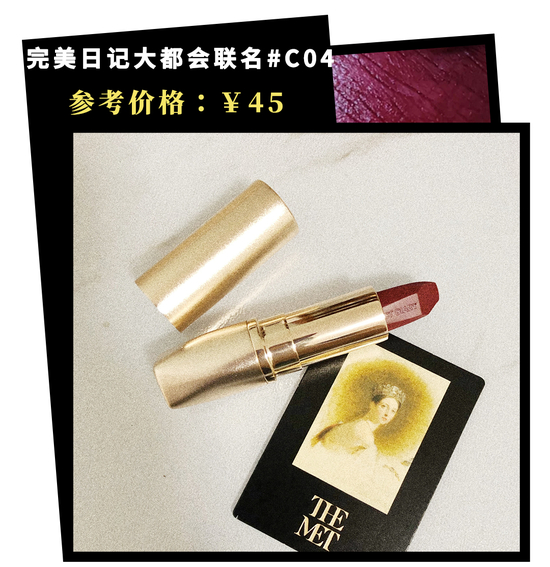 C04这只不同于一般的姨妈色,红、紫棕调和的刚刚好,就像葡萄酒+树莓汁调和出来的颜色,虽然看上去“重口”,但实际上无敌显白,上嘴还不老气~